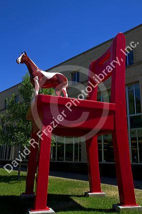 united states, america, usa, colorado, state, 38th state, centennial state, denver county, denver, city, consolidated city county, south platte river valley, high plains, mile high city, denver public library, the yearling, donald lipski, public art, sculpture, horse, chair, pinto, pony,